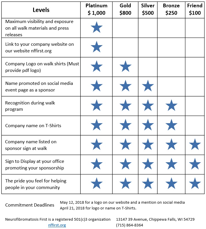 The families that are putting on this walk have organized a walk in the area the last four years under the auspices of another organization. Not seeing the money raised helping this area as they thought it should, they chose to start their own non-profit organization Neurofibromatosis First Inc (NF First for short). Run by a volunteer board, NF First does not pay any salaries to ensure that all funds stay local to raise awareness, educate the community and local medical professionals, as well as striving for a cure, while supporting affected families"